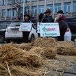 Фермери запалиха слама пред министерството на земеделието и я изгасиха с мляко