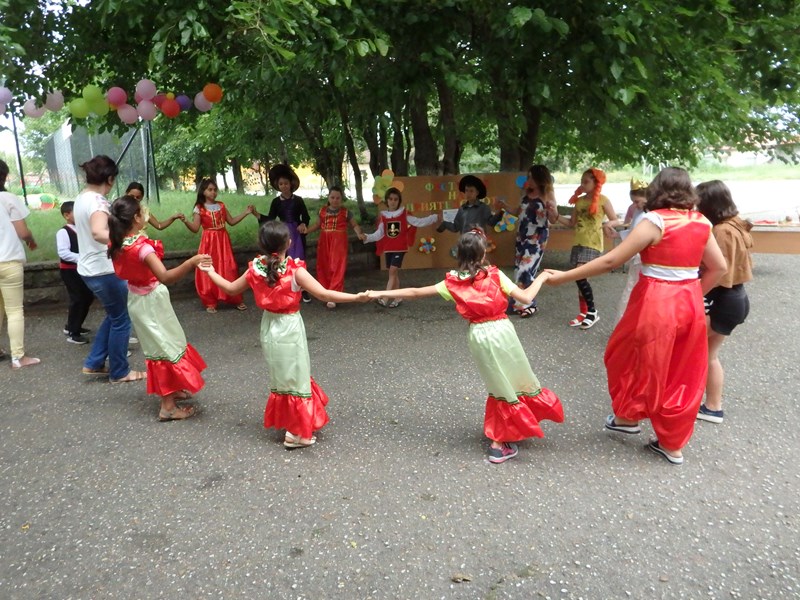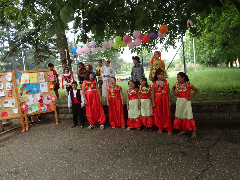 Облечени в костюми на различни етноси, учениците изпълниха песента „Детска планета“ и се хванаха на българско хоро. Песните и танците на различни етноси огласиха училищния двор.
