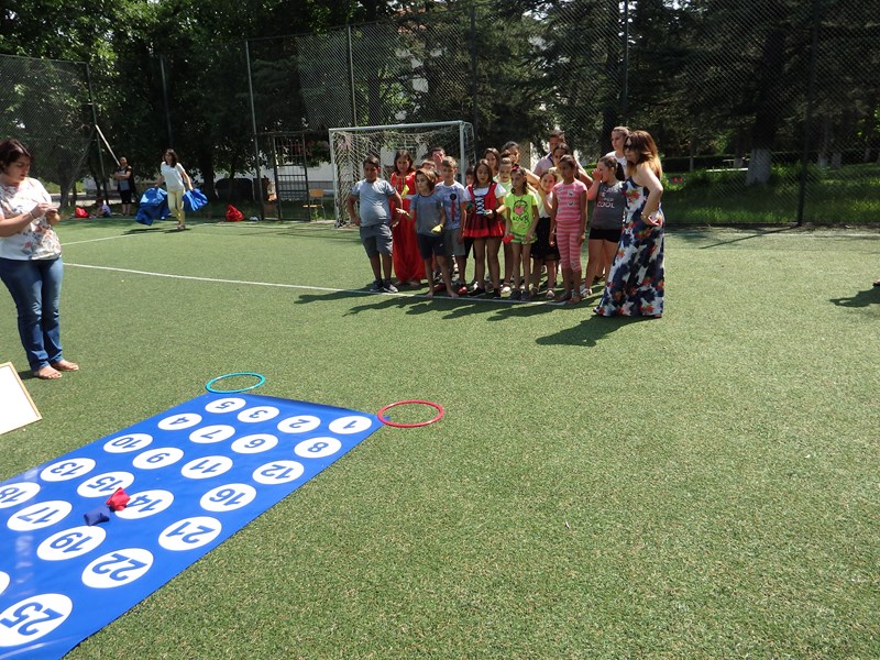 Надпреварата неусетно се пренесе на спортната площадка. Децата се впуснаха в различни състезания. По време на щафетните игри те преодоляваха различни препятствия, упражняваха се в точност, прецизност и бързина.