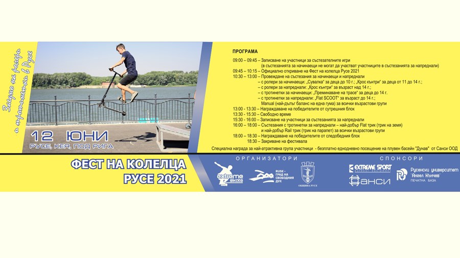 На 12 юни 2021 г./събота/, за втора поредна година ще се проведе Фестивал на колелца, който ще събере на едно място всички любители на ролери и тротинетки в Русе.