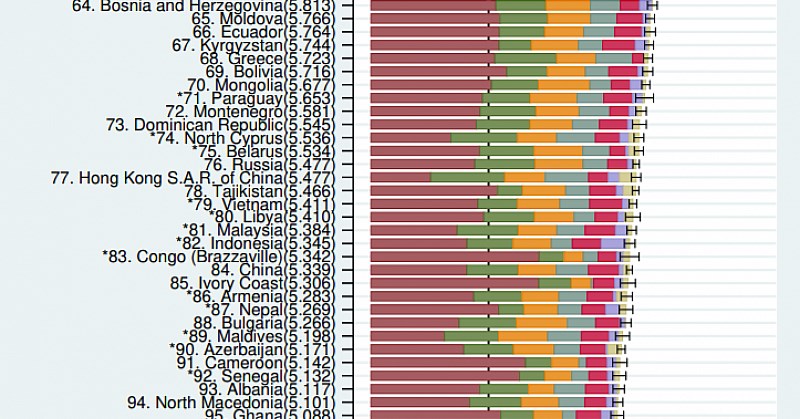 България е на 88-о място, след Непал и преди Малдивите. Страната ни се е изкачила с 8 позиции в сравнение с миналата година.