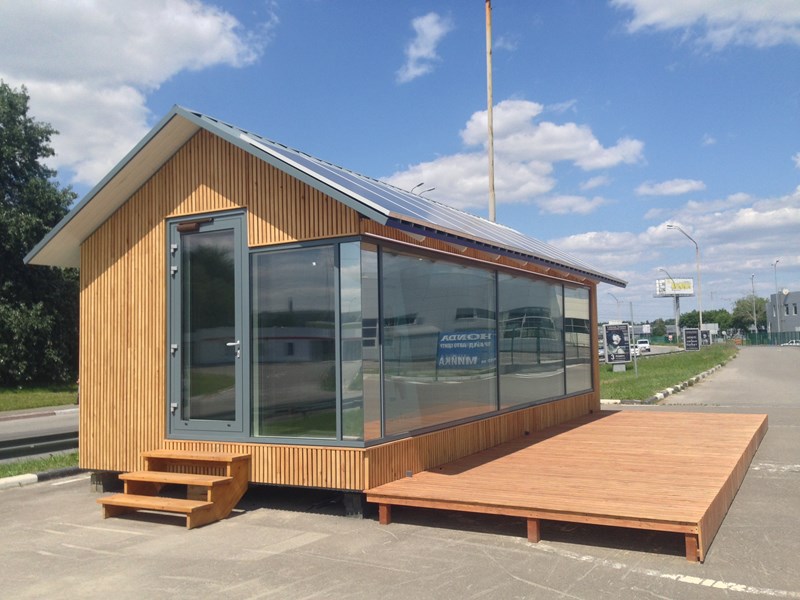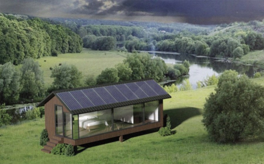След това се добавят прозорци, врати, соларни панели, канализация, отоплителна и охлаждаща система, алармена система.