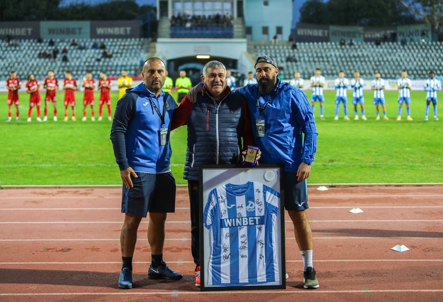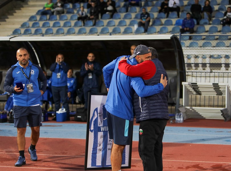 Треньорът на Магомед Рамазанов получи специален плакет и тениска с послания от всички футболисти на русенския клуб