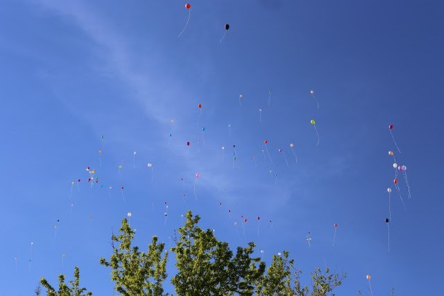Толкова бяха и балоните, пуснати с много радост от малчуганите в небето. Участие взеха и родителите им, като накрая се включиха в голямо хоро.