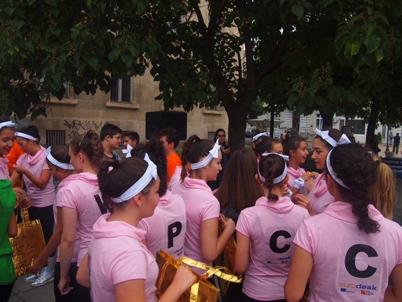 Участници от различни клубове на младежкия дом организираха информационна кампания и раздаваха флаери с информация за „Евродеск” и къде е най-близката „Евродеск точка” в града. С мащабен флашмоб на площада пред съда, танцьорите привлякоха вниманието на случайни минувачи.