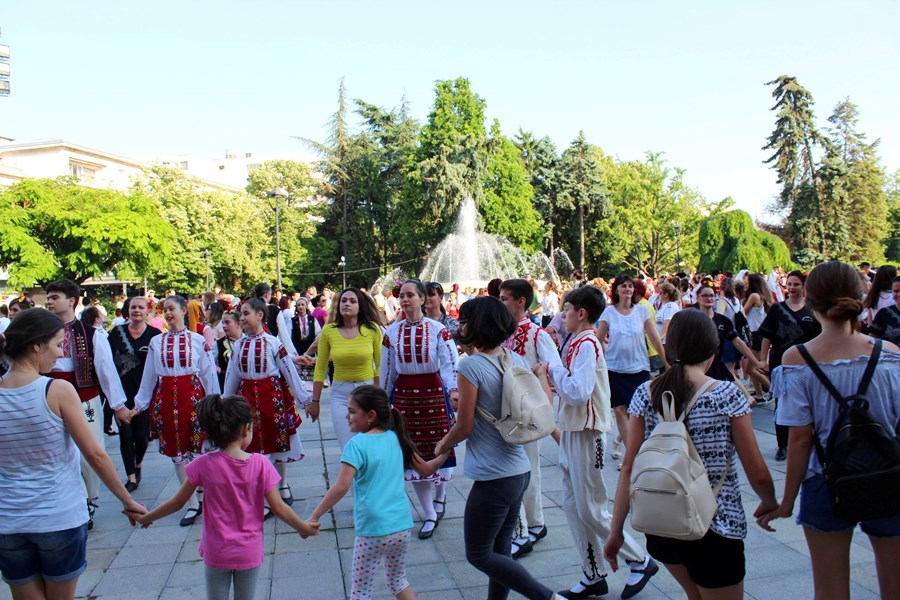 Осем фолклорни състава, школи и клубове, изучаващи народни танци в град Русе днес зарадваха русенци с флашмоб пред Съдебната палата.