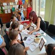 Заедно с дъщеря си тя превърна залата на читалището в малка работилница, където деца и младежи с интерес изпробваха кръстат и полегат бод, научиха как се прави оконтуряване и дори изработиха декоративно украшение с шевици.