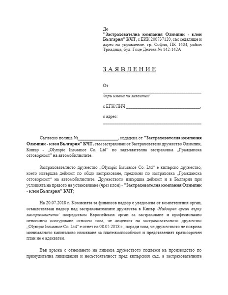 Във връзка с множеството жалби и запитвания от потърпевши от фалита на „Олимпик“, публикуваме формуляр жалба за възстановяване на сумите, заплатени от застрахованите лица.