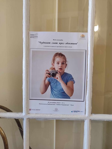 На 30 октомври 2023 г. в Регионална библиотека „Любен Каравелов - Русе беше открита изложба на фотоателие „Чудният свят през обектива“. Седем русенски ученици от уязвими групи представиха творбите си, които са резултати от специално обучение. Под ръководството на професионален фотограф в продължение на няколко месеца те се запознаха с фотографските жанрове, придобиха усета да подбират правилните настройки за постигане на въздействащи снимки и се учат да опознават себе си и околния свят с помощта на изкуството, обогатяват светоусещането си, откриват различни гледни точки. Днес децата получиха тематични подаръци, които да използват практично.