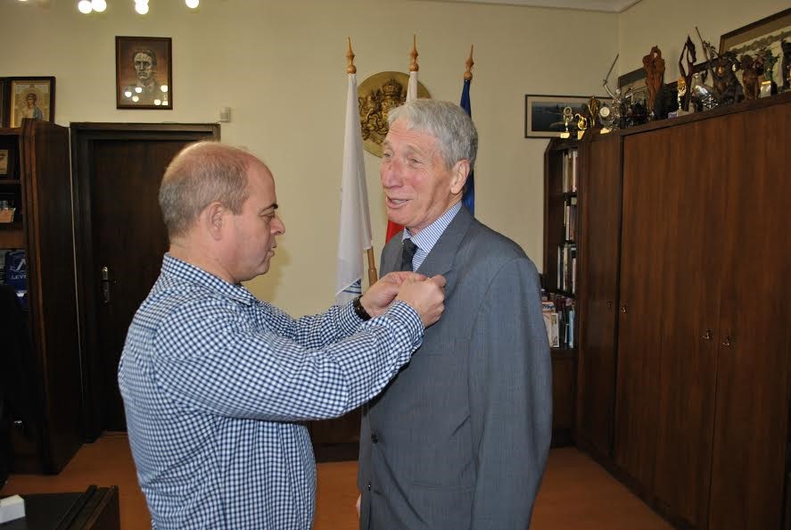 По този повод, г-н Стоилов му връчи златна значка „Русе“. „Тази значка се носи от хора, които са дали своя принос и сърцето си на Русе. Имате пълното основание и качества да я притежавате и носите с гордост“, заяви кметът.