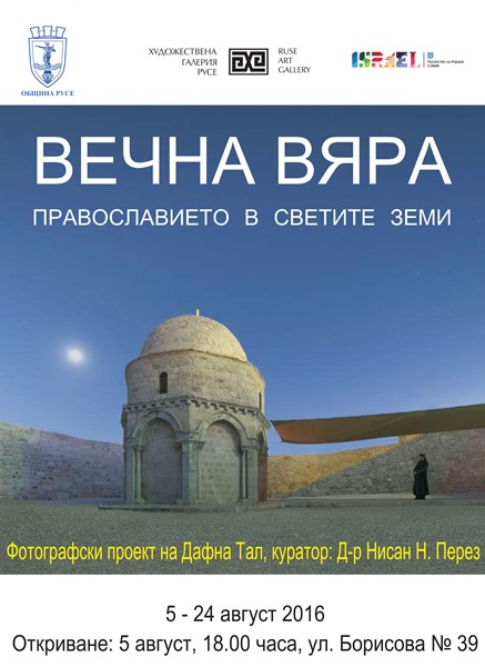 Посолството на Израел в София и Художествена галерия - Русе, в сътрудничество с Община Русе, имат удоволствието да Ви поканят на официалното откриване на фотоизложбата „Вечна вяра: Православието в Светите земи“ с автор израелският фотограф г-жа Дафна Тал.