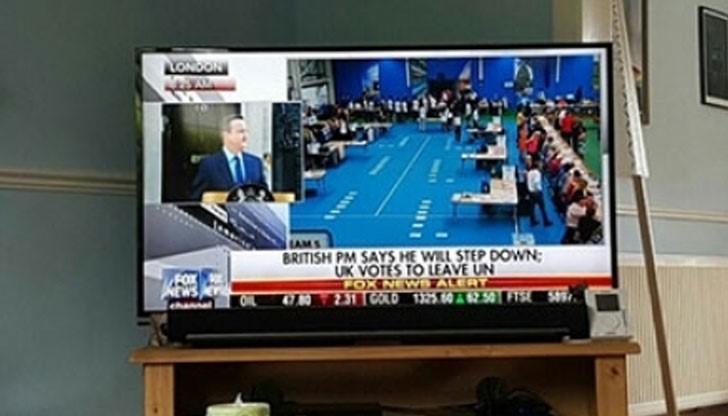 Американският телевизионен канал Fox News реши да се пошегува със своите зрители, като им съобщи в ефир, че въз основа на резултатите от референдума, произвел се вчера, Великобритания ще напусне ООН (UN вместо EU).