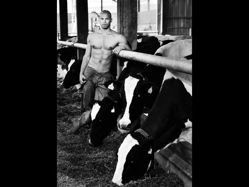 Да работиш във ферма без дрехи едва ли е най-добрата идея от здравословна гледна точка, но тези момчета са прекалено заети с камерата, за да обръщат внимание на земята и добитъка.