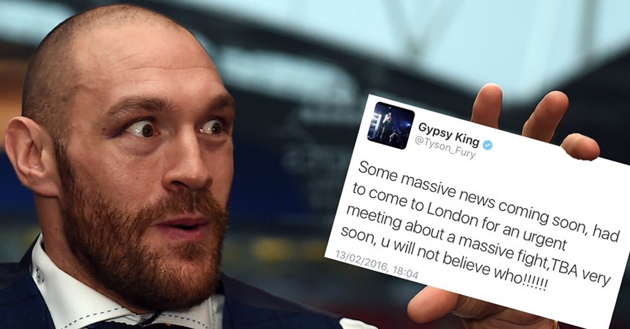 Фюри написа в своя микроблог в Туитър, че му се е наложило да пътува за Лондон по повод подписването на голям бой.
