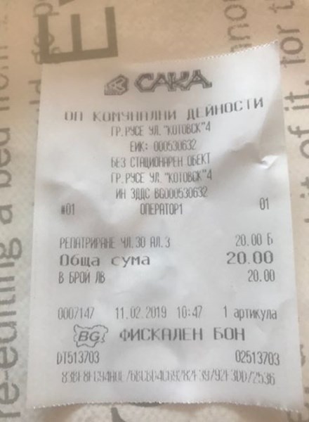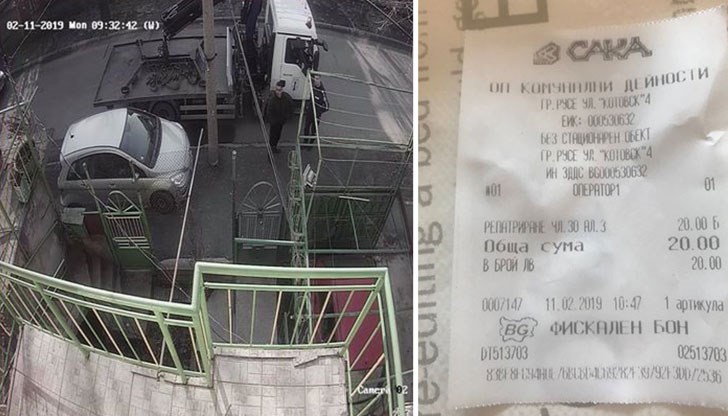 Жената дори вече е глобена с 20 лева, защото е спряла пред гаража на къщата си на улица "Петрохан", а касовата бележка за платената глоба е издадена 1 час по-късно.