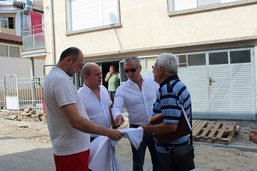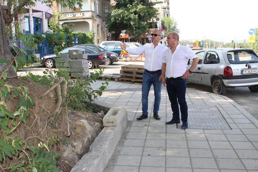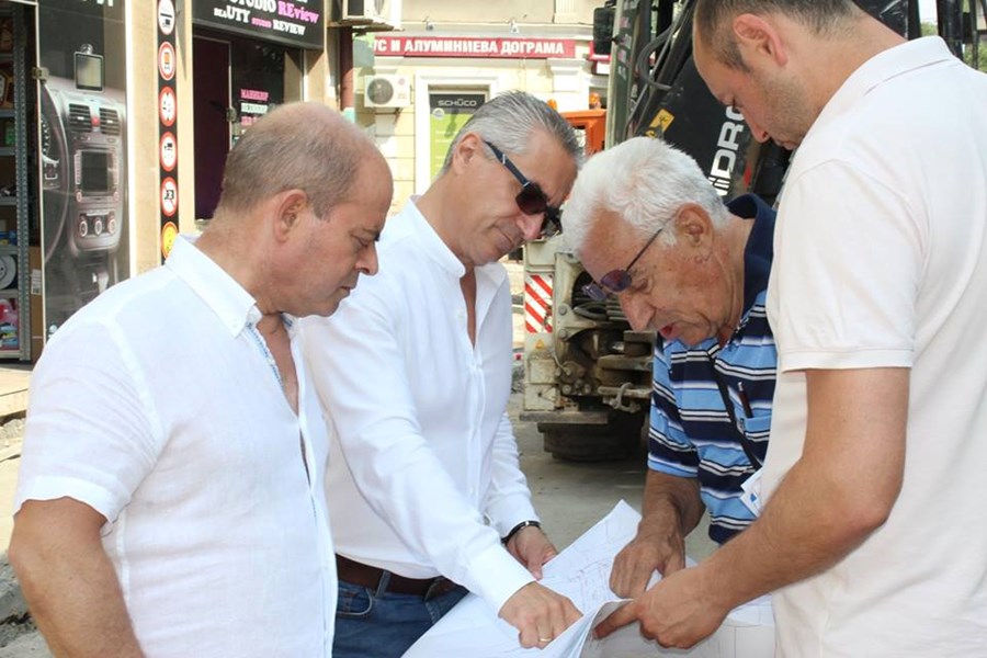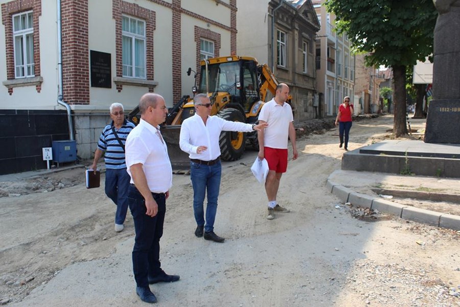 Стоилов и заместникът му Наков инспектирали ремонта и по улица "Райко Даскалов" и установили, че ремонтите се извършват съгласно приетия линеен график.