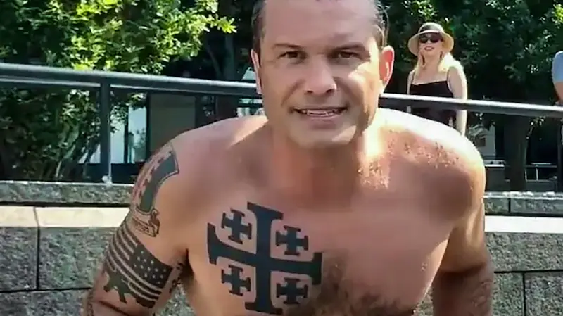 Фокусът на критиките от лондонското издание пада основно върху 45-годишния ръководител на Пентагона. Според информацията, Пийт Хегсет носи татуировка на гърдите си с йерусалимски кръст, който е исторически символ от епохата на кръстоносните походи. На ръката му е изписан и латинският израз "Деус Вулт" (в превод: "Бог го иска"), известен като древен религиозен боен вик.