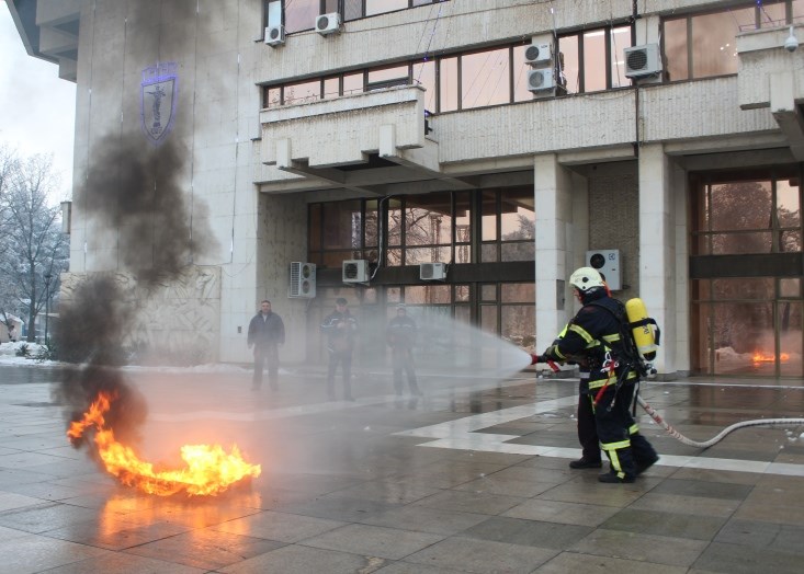 Служителите на Областна администрация Русе проведоха планирано занятие за действие при пожар в сградата.