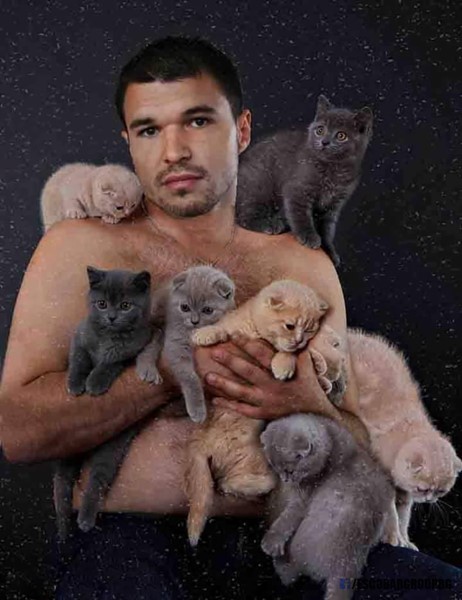 На фотоса Божинката позира с цяло котило малки котенца, а заглавието на снимката е: "Вече е щастлив."