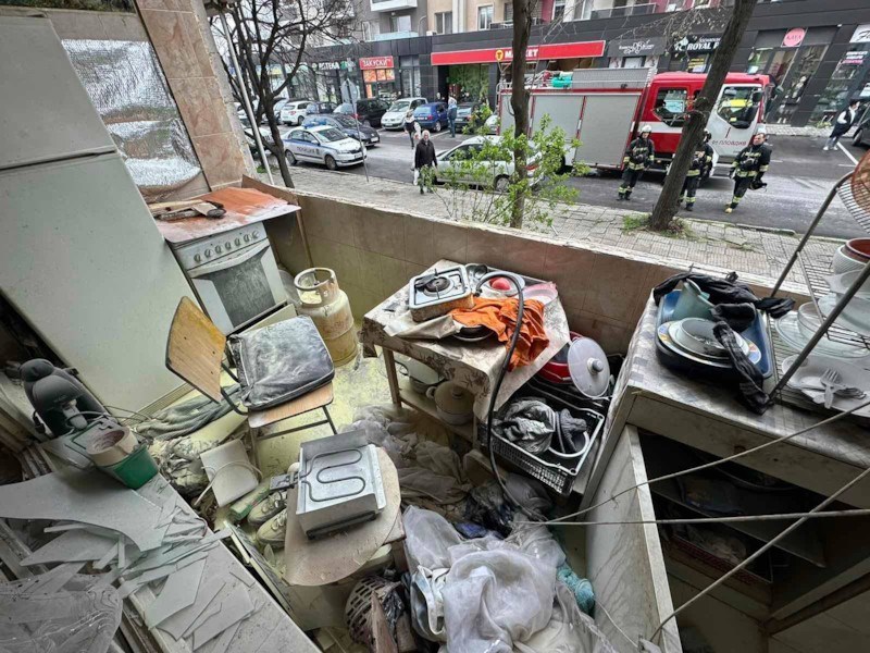 От взривната вълна е паднала дограмата на терасата. Собственикът на апартамента се е намирал в съседно помещение и не е пострадал.