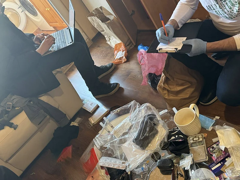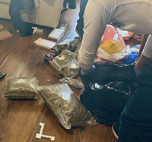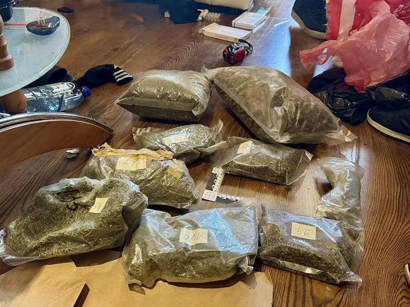При последвалите процесуално-следствени действия органите на реда претърсиха общо пет адреса в столицата. Находките разкриват мащаба на криминалната дейност, далеч надхвърляща обикновеното сводничество. Полицията иззе сериозно количество наркотични вещества: 2 килограма марихуана, 550 грама амфетамин и 100 грама метамфетамин, придружени с електронна везна за разфасоване.