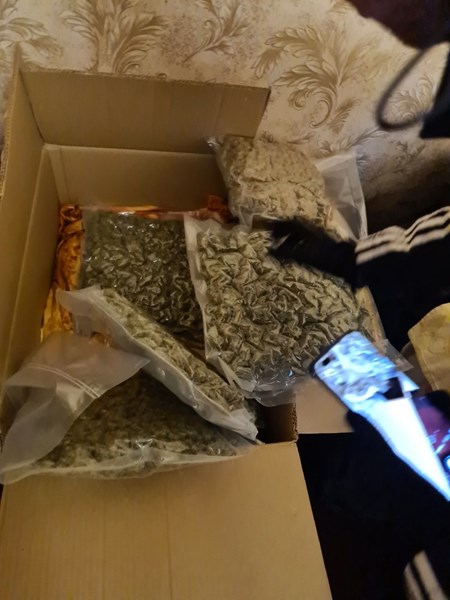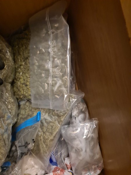 В процеса на операцията е извършено претърсване на стопанисваните от 34-годишния жилища, където са намерени общо около 9,5 килограма марихуана, 100 грама кокаин, 1000 таблетки екстази, 1,5 кг амфетамин, електронна везна, мобилни телефони и нападателна бойна граната.