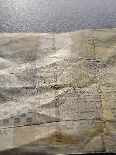Гладка или прекалено лъскава хартия (истинската има специфичен релеф);