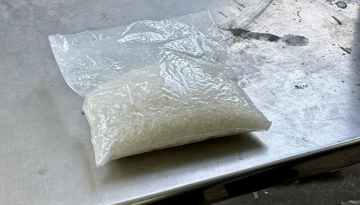 Наркотици: Пакет с бяло кристално вещество с тегло 985 грама, реагирало при полевия тест на метамфетамин.