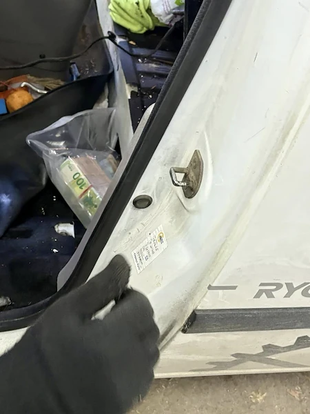 В хода на разследването е спрян за проверка лек автомобил на ТИР терминал във Видин. При детайлния оглед митническите и полицейски служители се натъкват на професионално изработен тайник – естествена кухина, разположена зад шофьорската седалка и пода на возилото.