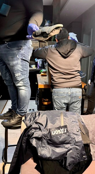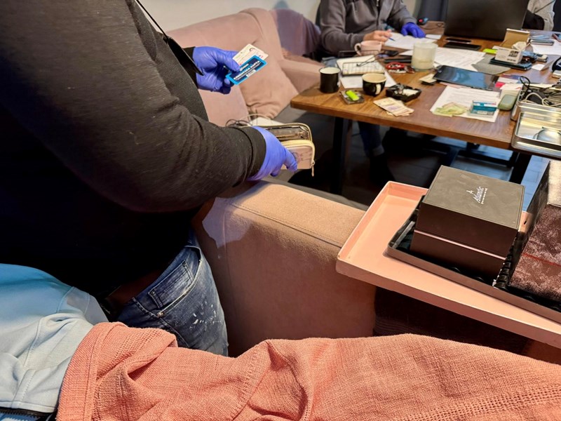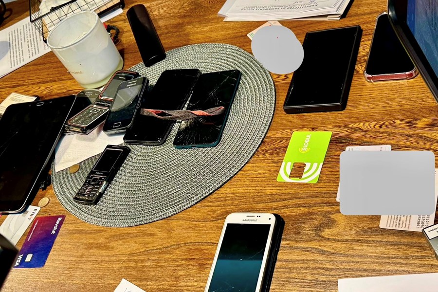 При претърсването на 11 имота и 3 автомобила, полицията изземи 13 мобилни телефона, сим карти, договори за наем на автомобили, записни заповеди и други документи, свързани с престъпната дейност. Открити са и фалшиви банкноти с номинал 200 евро.