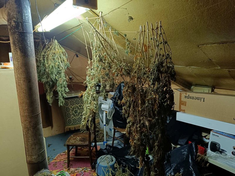 При претърсването са иззети 22 броя засадени растения от рода на конопа в различен стадий на растеж и 28 броя растения, подготвени за сушене. Намерена е и суха тревиста маса с тегло около 6 кг. От помещението са иззети лампи, вентилатори, климатични системи и други приспособления, спомагащи за развитието на незаконната дейност, както и торове и електронна везна.