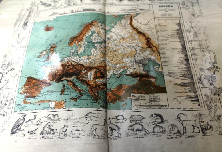 Най-старите издания в изложбата са „Учебный атлас по всеобщей географии“, издаден в Санкт-Петербург през 1876 г. и „Географо-статистически джобен сборник“, издаден в Русе през 1900 г. Той съдържа сведения за държавите, държавните глави, столиците и по-големите градове, монетите, мерките, теглилките, главните продукти на почвата и индустрията.
