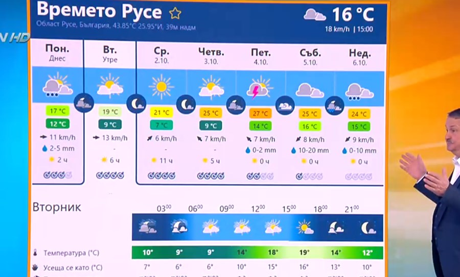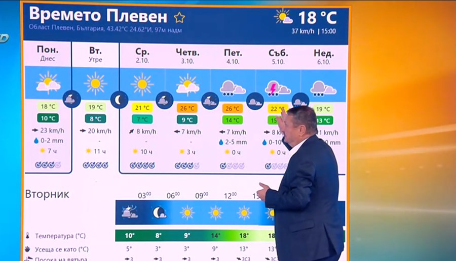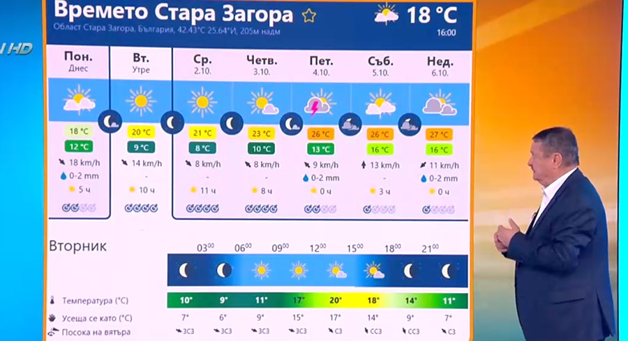 Изпратихме септември приключва с около градус до градус и половина по-топъл от обичайното, съобщи климатологът проф. Георги Рачев в интервю за bTV. Според него предстоящият уикенд ще предложи влажно, но топло време.