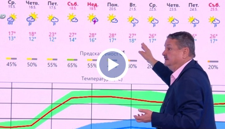 „След няколко часа започва да вали в Западна България и постепенно ще обхване Хасково и Свищов. На запад ще има много валежи, на изток – по-символични. Очаква се захлаждане в сряда, а от петък настъпва стабилизиране на времето за събота и неделя.“