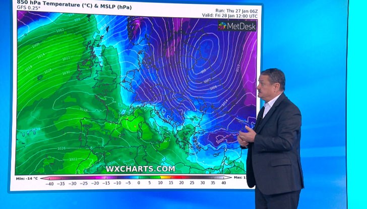„На този фон, в събота (30 януари) няма да е много студено, но в неделя (31 януари) отново ще бъде в Югозападна България. В Югоизточна България пък се борят с температури -1 – 0 градуса“, добави той.