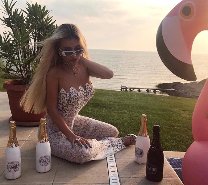 Вижда се, че двамата се забавляват в близост до морето, докато пият френско вино. Не е ясно кой е щастливецът до скандалната фурия, но снимките издават, че се занимава с реклама на международна марка вина, с което младата двойка се черпи. От снимките в профила му се вижда, че 100 Кила е близък негов приятел.
