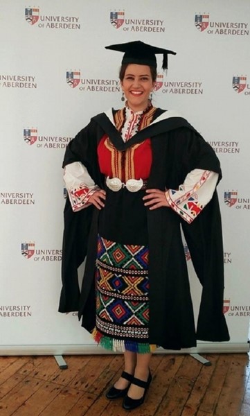 Гергана Иванова от Берковица се дипломира в Университета в Абърдийн, Шотландия, облечена в българска носия.