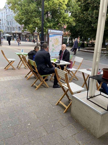 С тях е окръжният прокурор Румен Попов. Снимки от срещата са публикувани във фейсбук групата "Забелязано в Пловдив - новинар".