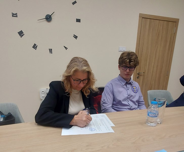 Дарението бе официално връчено от Максим Стойчев, ученик от 11б клас и заместник-председател на Ученическия парламент, заедно с г-жа Сълзица Нанова от Училищното настоятелство и г-жа Жулиета Иванова – педагогически съветник и председател на Ученическия парламент.