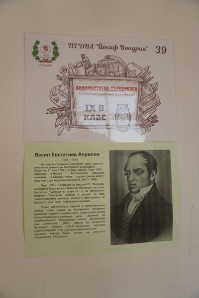 Професионална гимназия по дървообработване и вътрешна архитектура (ПГДВА) "Йосиф Вондрак" - Русе отбеляза Деня на народните будители с иновативна образователна инициатива. В продължение на седмица, всеки клас избра свой патрон сред великите български будители и превърна класната си стая в своеобразен музей, посветен на неговия живот и дело.