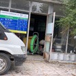 След това ни сочи нагоре и добавя: „От козирката вече няма какво да пада“. Поглеждаме нагоре и виждаме, че стърчат само ламарини.