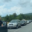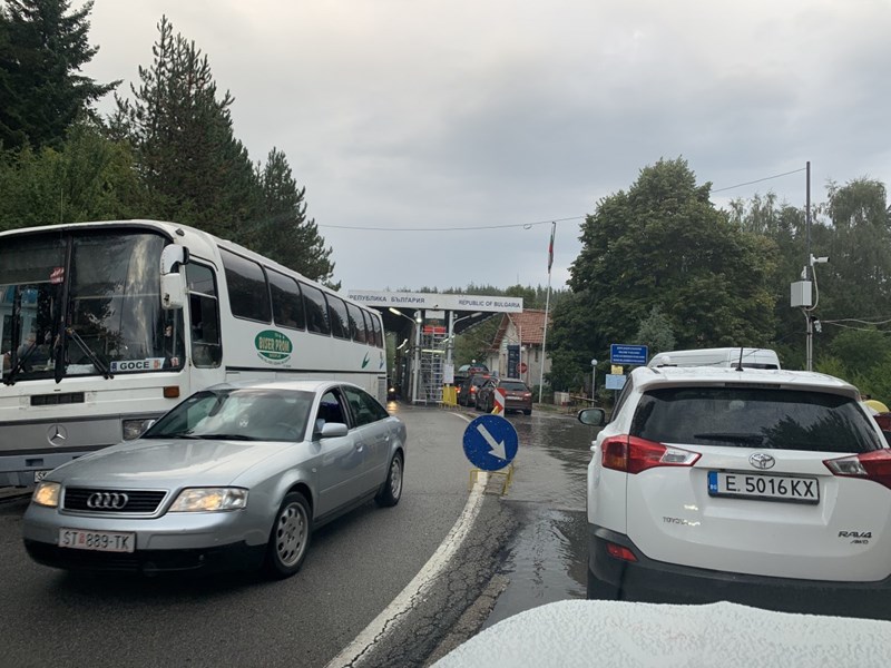 Опашката от македонска страна е също километрична. А много от чакащите са излезли от колите си, за да си поемат глътка въздух след часове чакане…