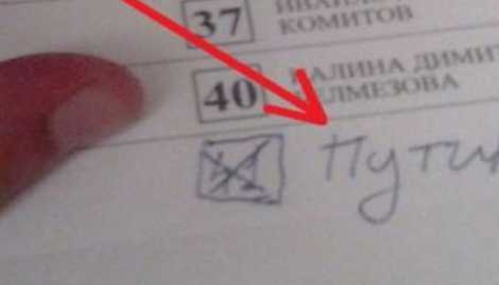 Находчивият гласоподавател си е дописал в бюлетината своя любимец – руския президент Владимир Путин, и е задраскал неговото квадратче.