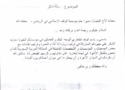 От документите става ясно също, че представители на Мюфтийството са били на посещение в Саудитска Арабия. В писмо до фондацията от Мюфтийството благодарят за усилията, които тя полага, за да достига до мюсюлманите в България така че вярващите да достигат до "праведната доктрина и да се учат на правата си религия".