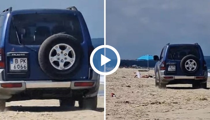 Шофьор подкара автомобила си на плажа в Шкорпиловци. На кадрите се вижда как той е в непосредствена близост до водата и плажуващите, ясно личи и номерът на автомобила.