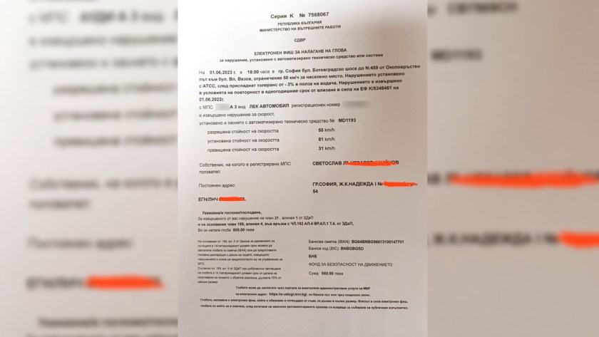 От СДВР обясняват, че са се самосезирали и след проверка на случая са установили, че е станала техническа грешка, заради което глобата ще бъде анулирана.