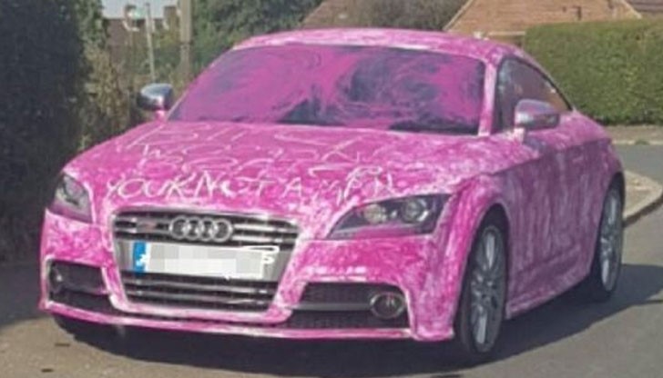 Разгневена жена си отмъсти доста публично и жестоко на своя „биещ я мъж”, като боядиса скъпарското му Audi ТТ с розова боя и издълба в боята послания. Едно от тях гласи: „Ти не си мъж”. Возилото, което би трябвало да е бяло, е било забелязано от местни жители в селището Флакуел Хийт във Великобритания.