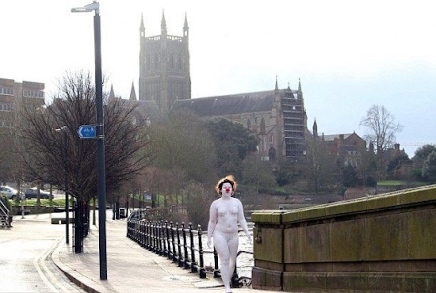 Жителите на английския Уорчестър бяха смутени, след като видяха шокиращата гледка на гола жена клоун, която съвсем спокойно се разхожда по улиците на града на дневна светлина, пише "Дейли Мейл", цитиран от Novini.bg