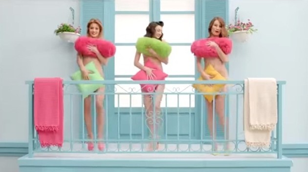 За рекламата са снимани 5 танцуващи момичета на фона на няколко различни сета. В някои от сцените те са по бельо, но в останалите - чисто голи и покрити единствено от възглавници, гъби за баня и водни лилии.