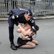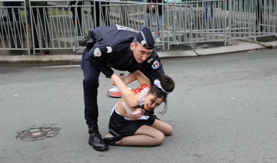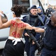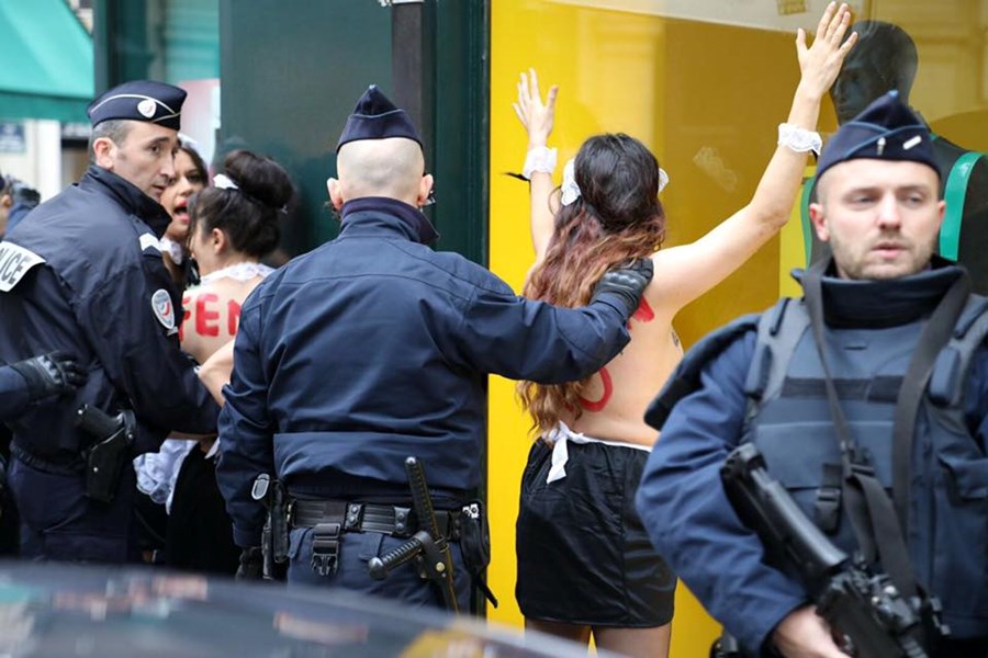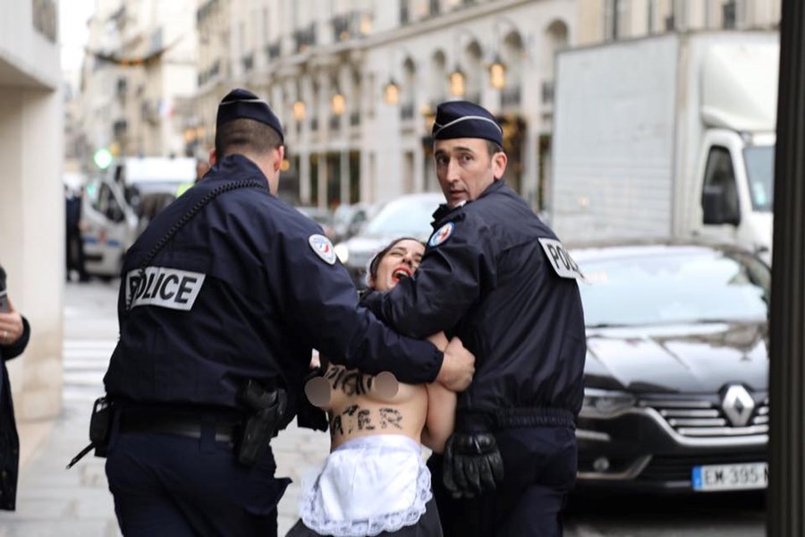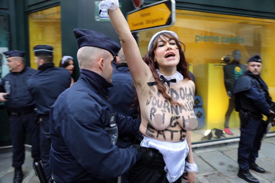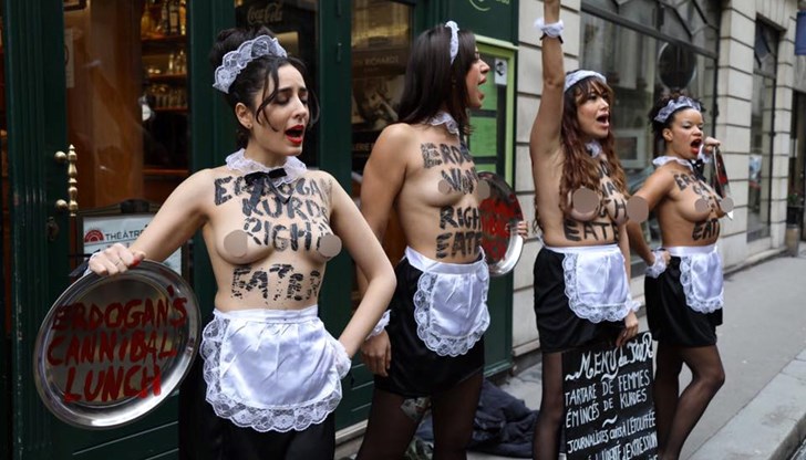 Голите до кръста жени демонстрираха пред Елисейския дворец. Те скандираха: "Ердоган – убиец на човешките права".